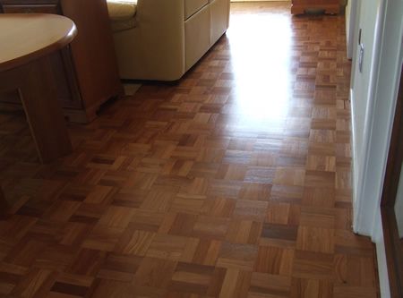 The Real Wood Floor underneath the original carpet was Mahogany Mosaic Finger Parquet which was in reasonable condition but needed a full sand and re-finish to be looking its best again.